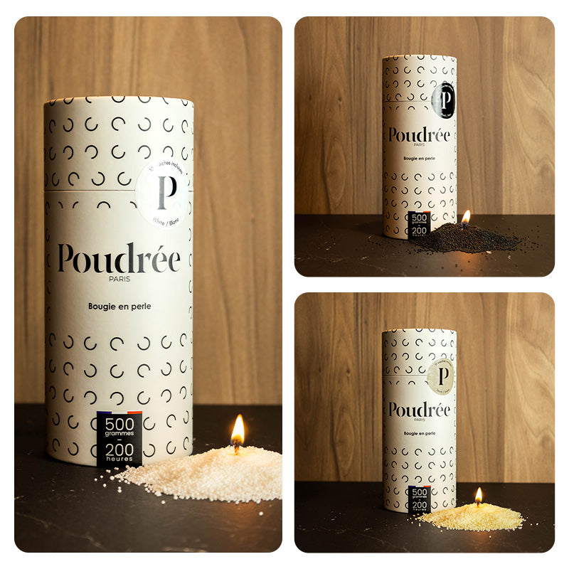 Kreieren Sie mit unseren Duftpulvern Ihre ganz persönliche Duftkerze. Wählen Sie Ihren Duft, füllen Sie die Perlen in Ihr Wunschgefäß und genießen Sie eine elegante Flamme, die sich immer wieder erneuert.